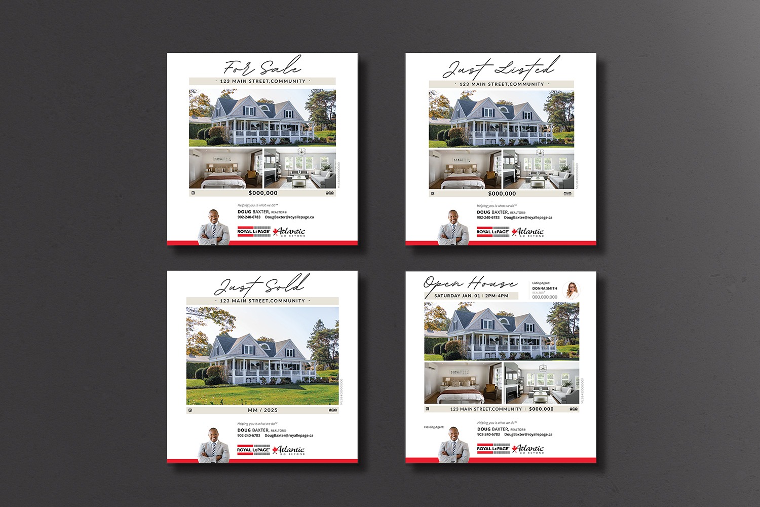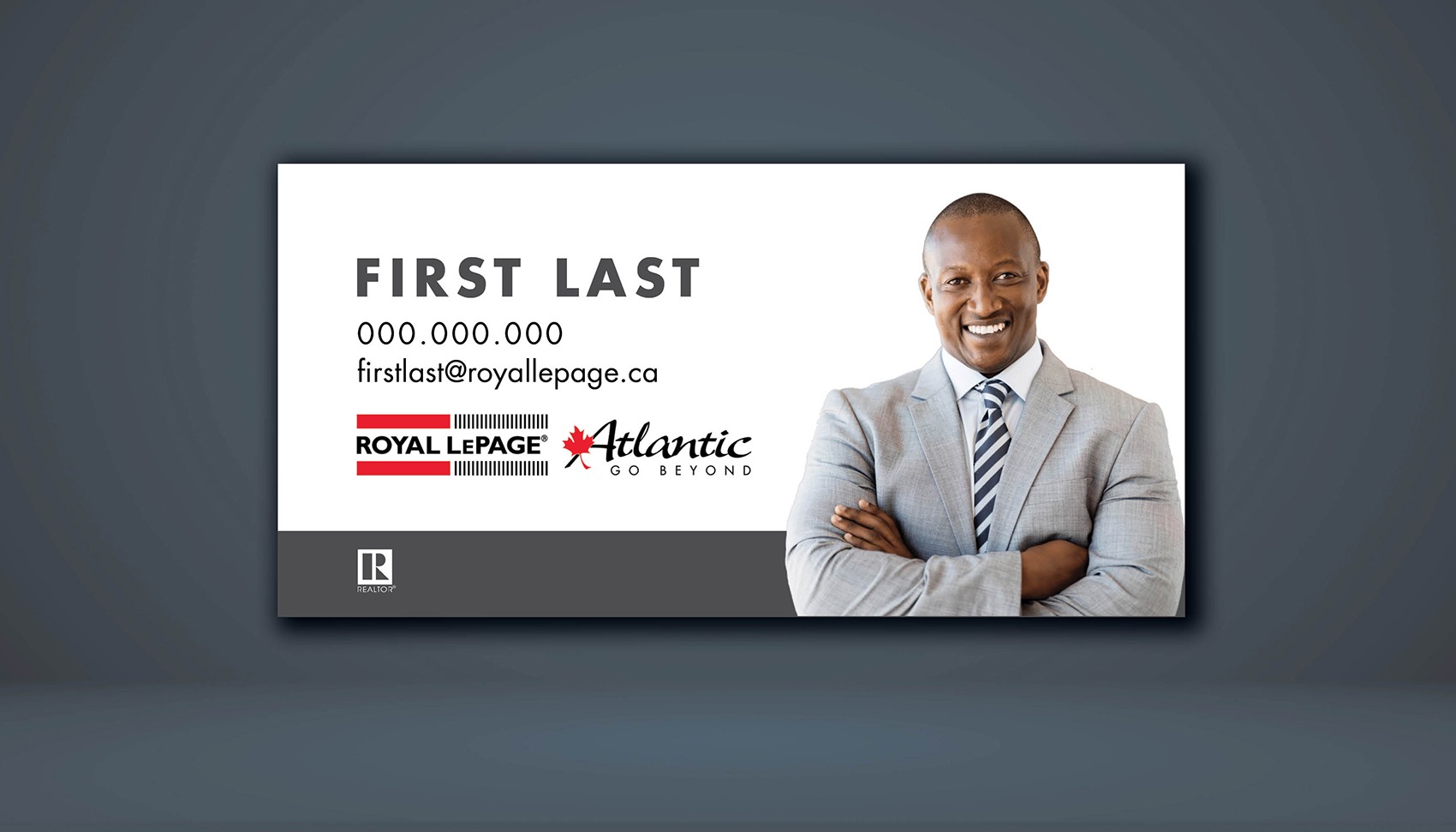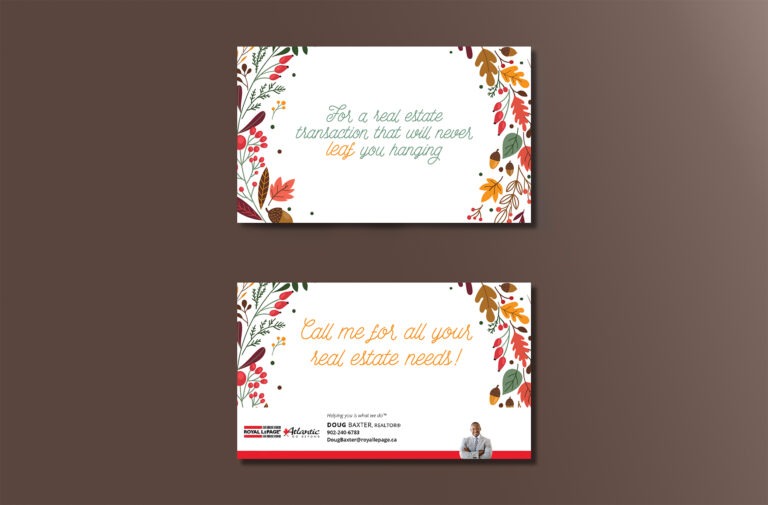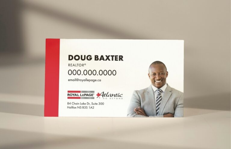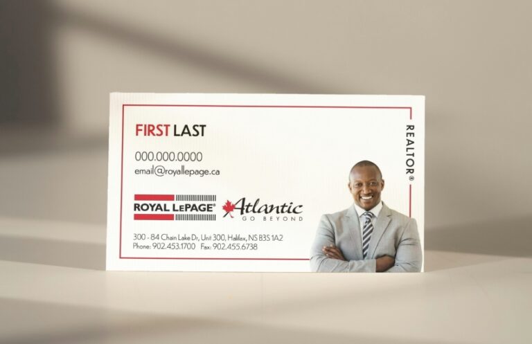 Each card features the official Royal LePage Atlantic logo, along with your headshot and contact information to help strengthen your brand recognition as an RLPA agent.