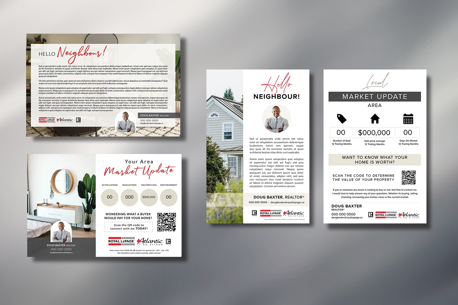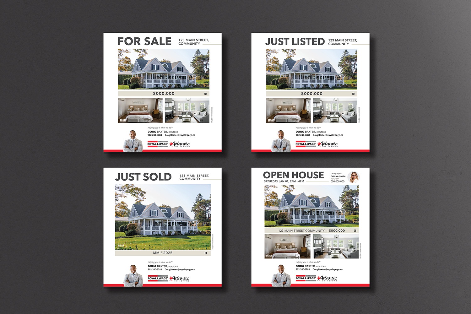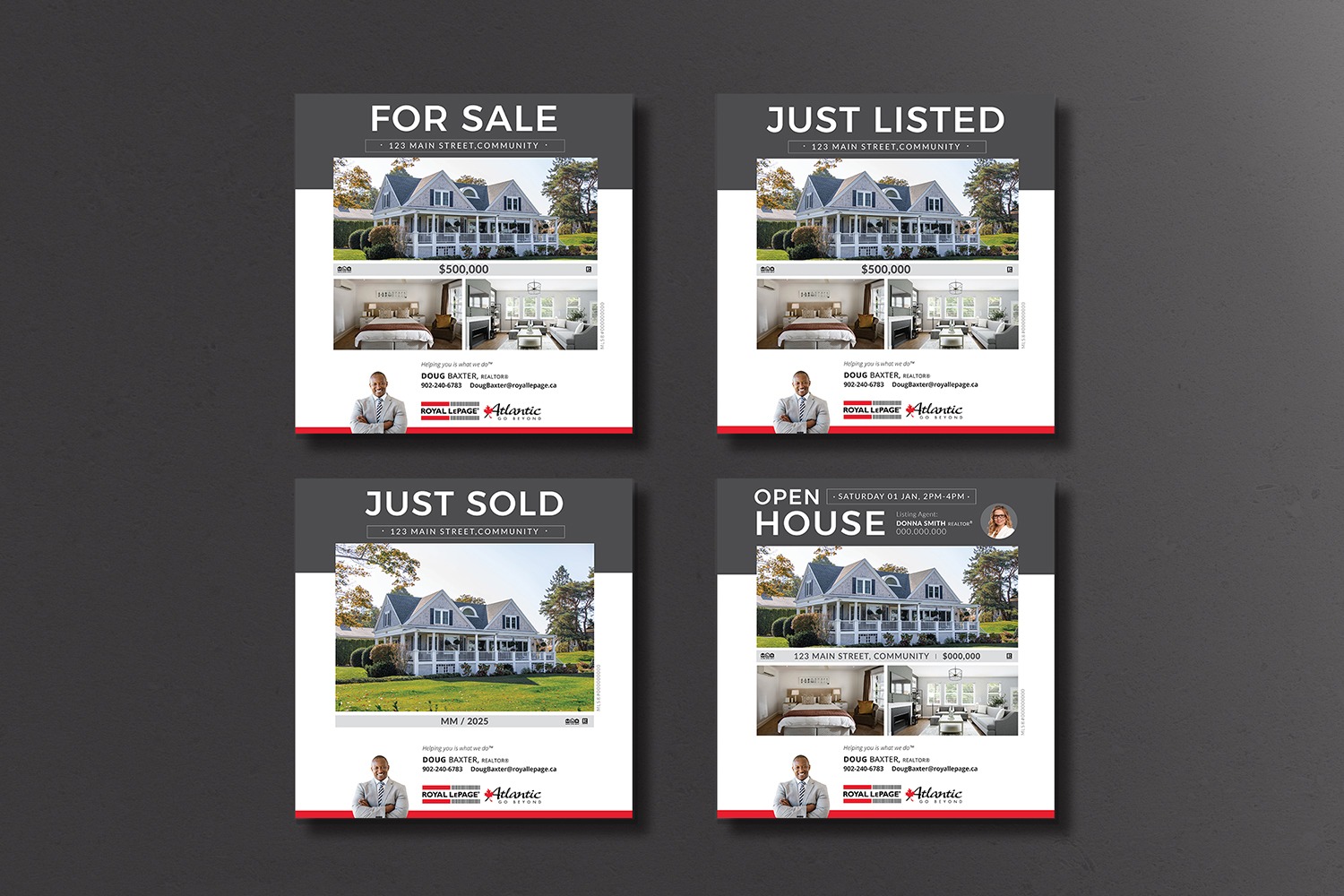 Each card features the official Royal LePage Atlantic logo, along with your headshot and contact information to help strengthen your brand recognition as an RLPA agent.
