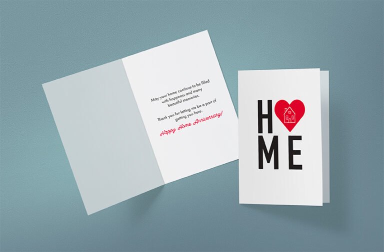 Physical greeting cards designed for any occasion. Choose from our templated options for: birthdays, home purchase anniversaries, holidays & thank-yours – or have us create a custom for you from scratch!