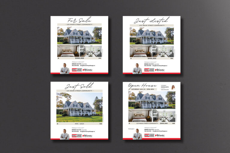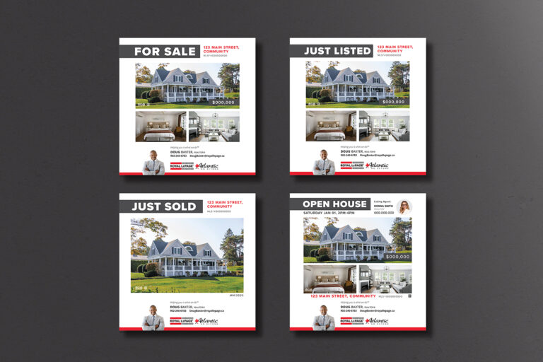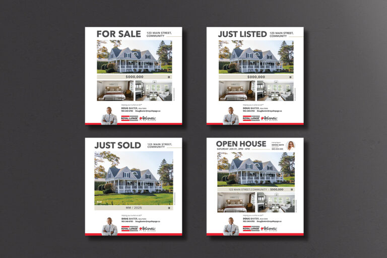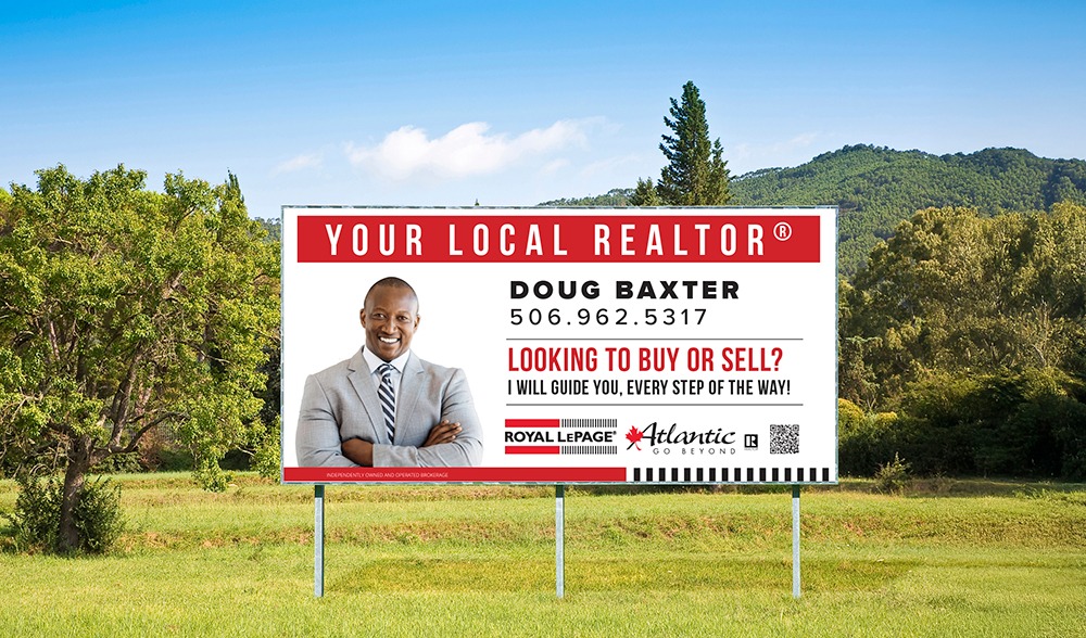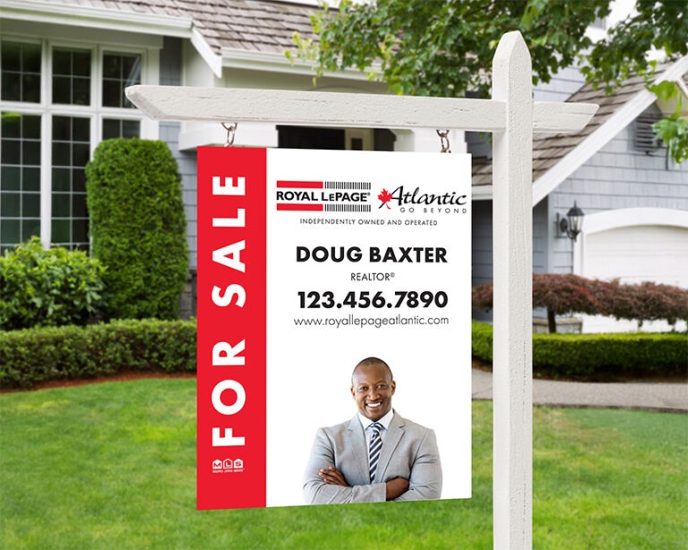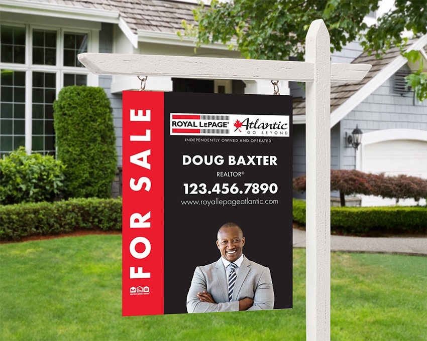 “For Sale” lawn signs are placed directly on a listing to: attract attention, indicate its presence on MLS®, and to increase visibility in its direct neighbourhood. All “For Sale” signs are complete with professional, Royal LePage Atlantic branding along with an agent’s headshot and contact information, unless otherwise requested.