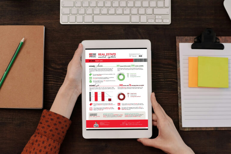 Quarterly stats illustrate real estate performance and market trends over a three-month period. These one page reports provide both region overall and district-specific numbers for areas across Nova Scotia & New Brunswick.