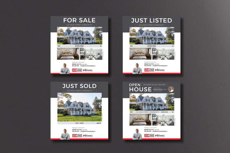 An array of digital images to help promote your listings on social media (i.e. Facebook & Instagram). All images are designed to meet rigid RLPA & real estate compliance standards, giving you peace of mind when posting to your platforms. Request any of the following image types via the “Order a Service” button below: