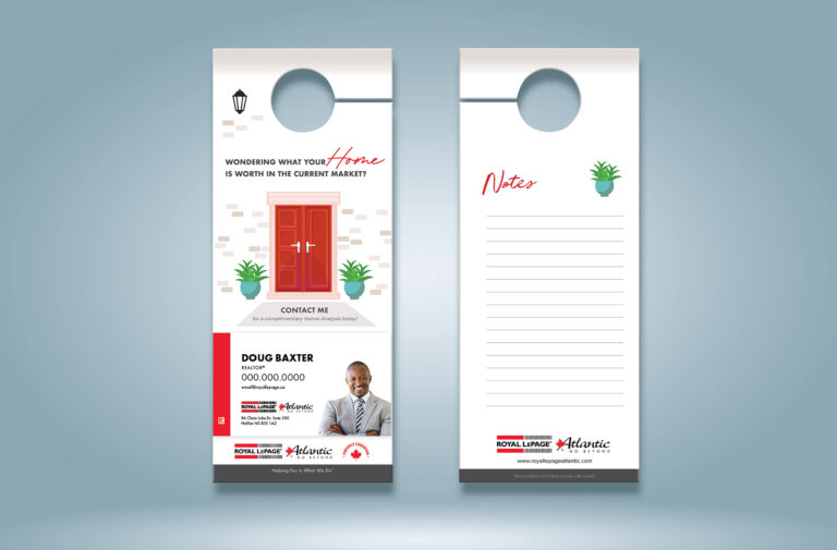 Door hangers are generally used to promote yourself as an agent, provide information about a property (i.e. Just Listed, For Sale, Just Sold or Open House), or to promote a community event that you are hosting.